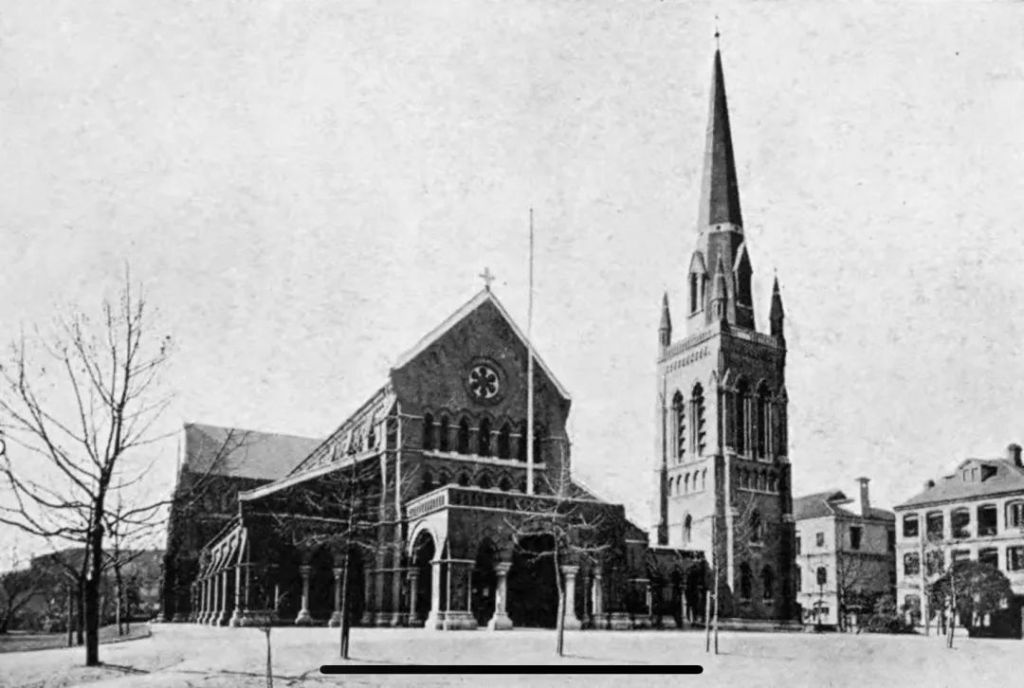 所以,开埠之后的百年当中,圣三一堂一直是租界的的政商和宗教活动中心。1893年11月18日,上海工商各界庆祝开埠50周年,举办地就在堂前的花园。